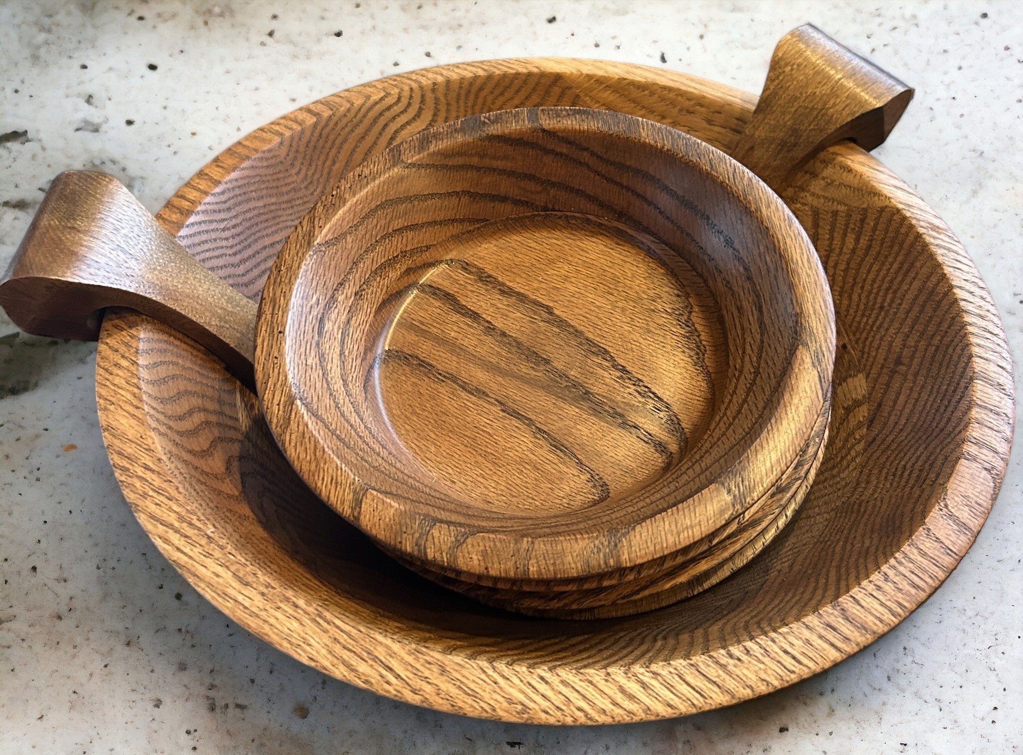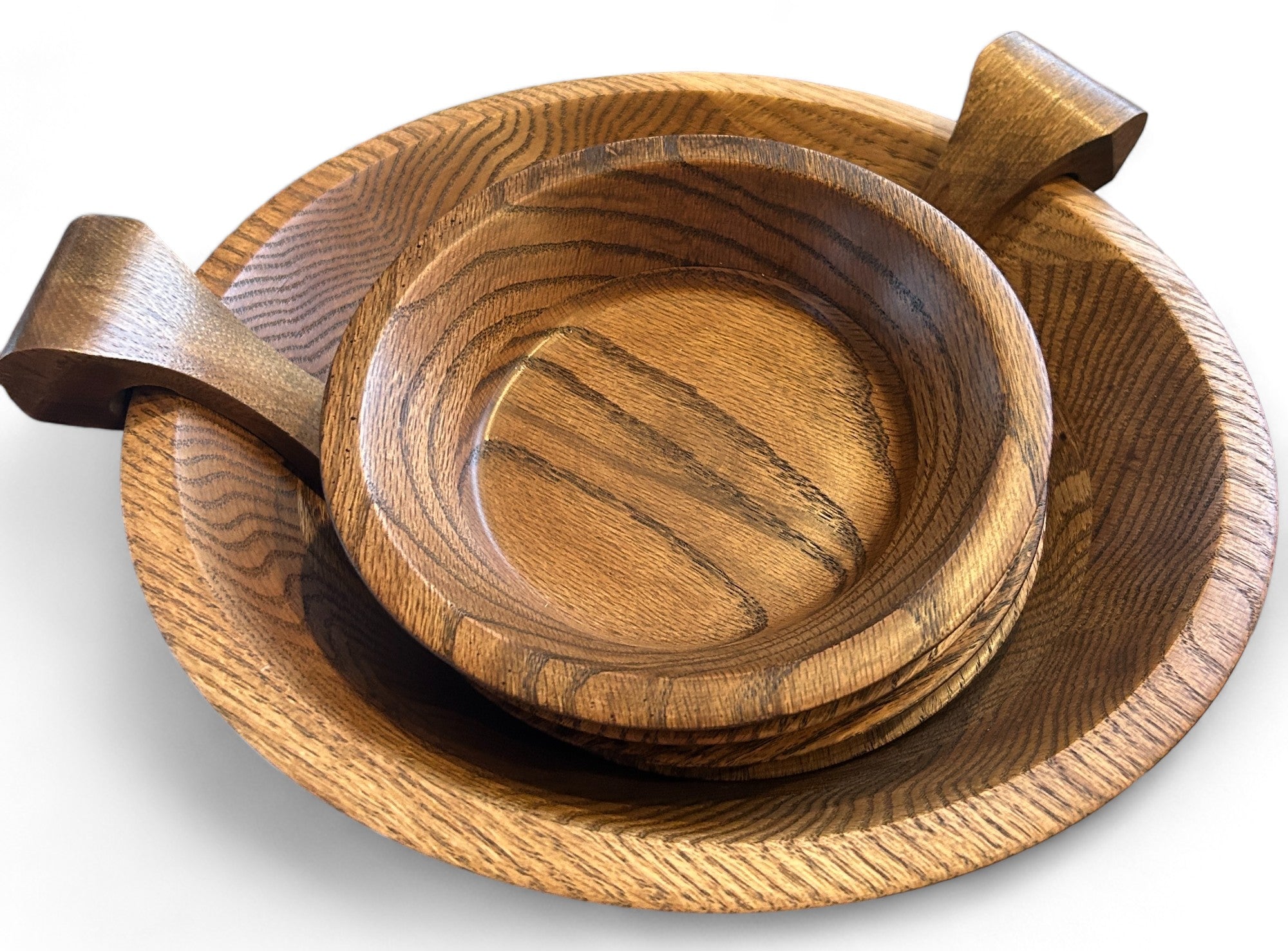 This solid Missouri walnut bowl set is the kind of piece that makes everyday food look intentional; salads, citrus, piled-high pasta, whatever you’re serving. You get one generous serving bowl + six smaller bowls, plus serving tongs that hook onto the side of the big bowl (because smart design is always in style).