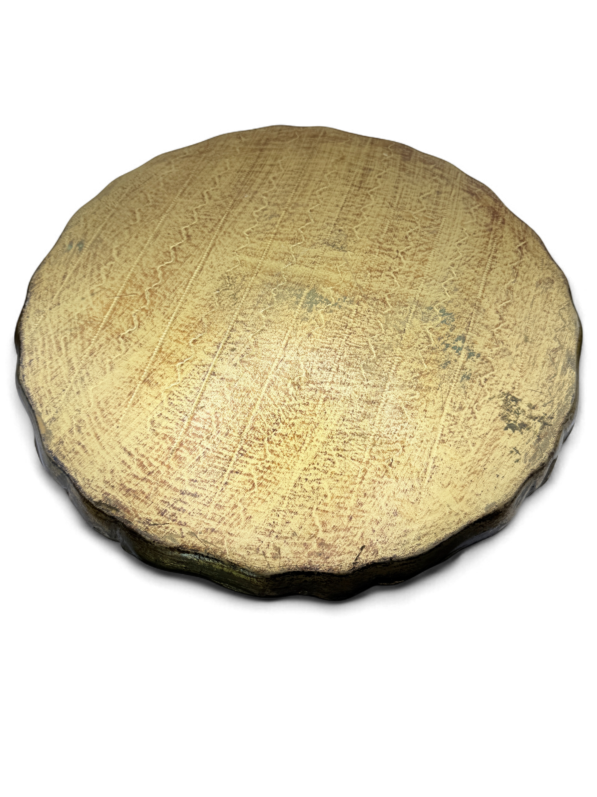 This gorgeous vintage Florentine tray brings all the warmth and romance of mid-century Italy to your home. Handcrafted from lightweight wood and finished in rich layers of gold leaf, warm red, and ivory, it features the ornate scrollwork and scalloped edges typical of Florentine toleware made in Florence during the 1950s and 1960s.
